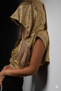 Metallic gold wrapped hooded top