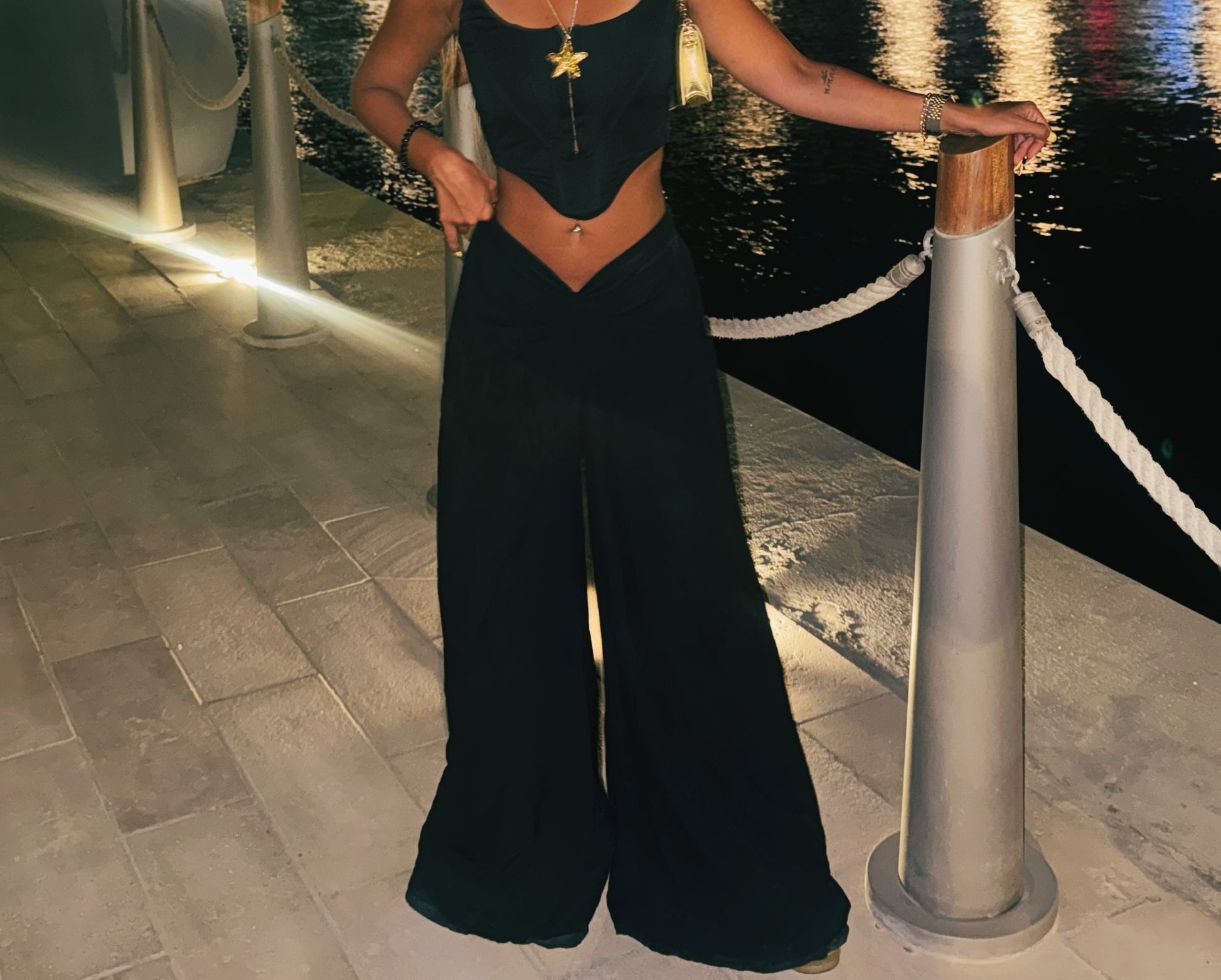 Linen V black pants