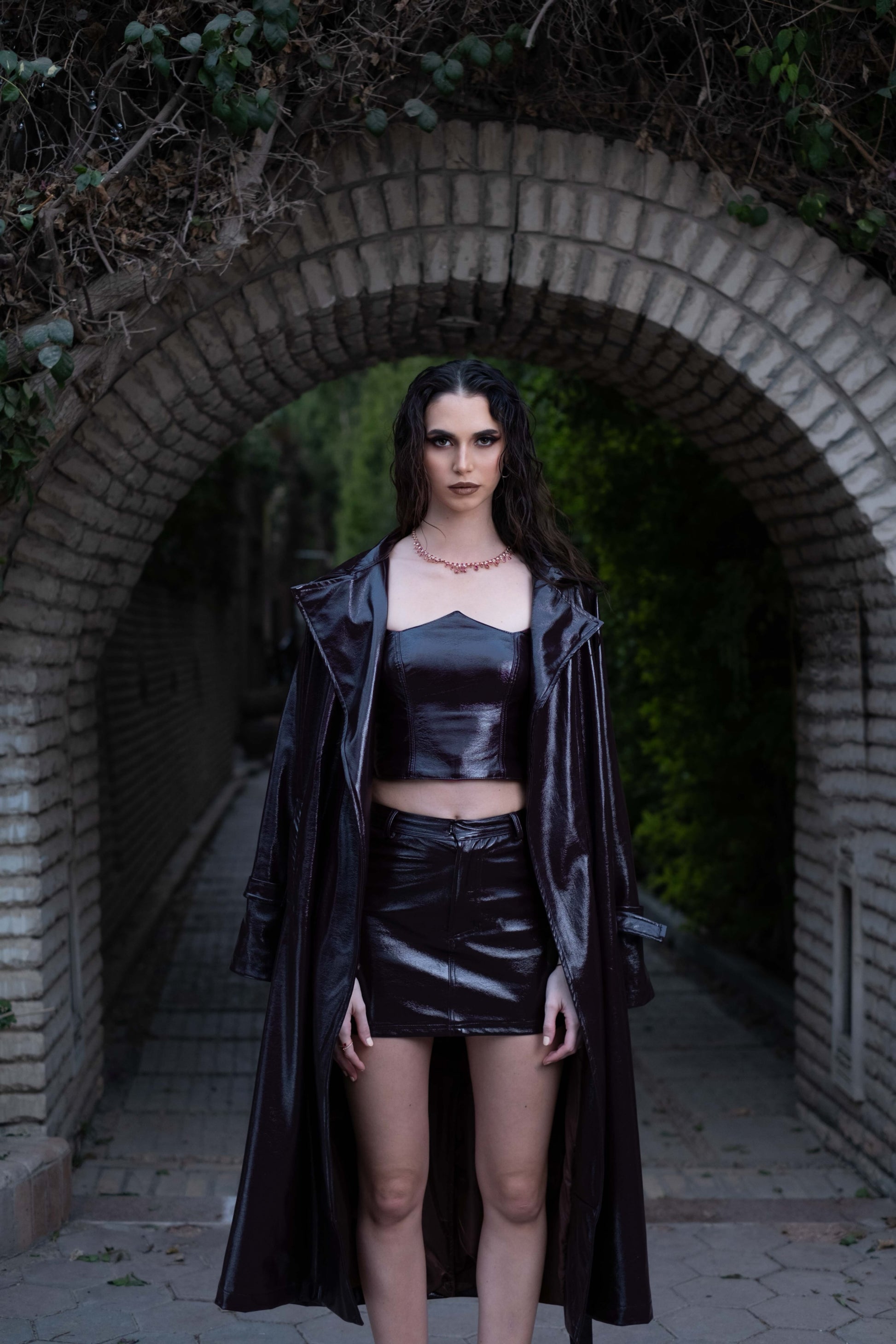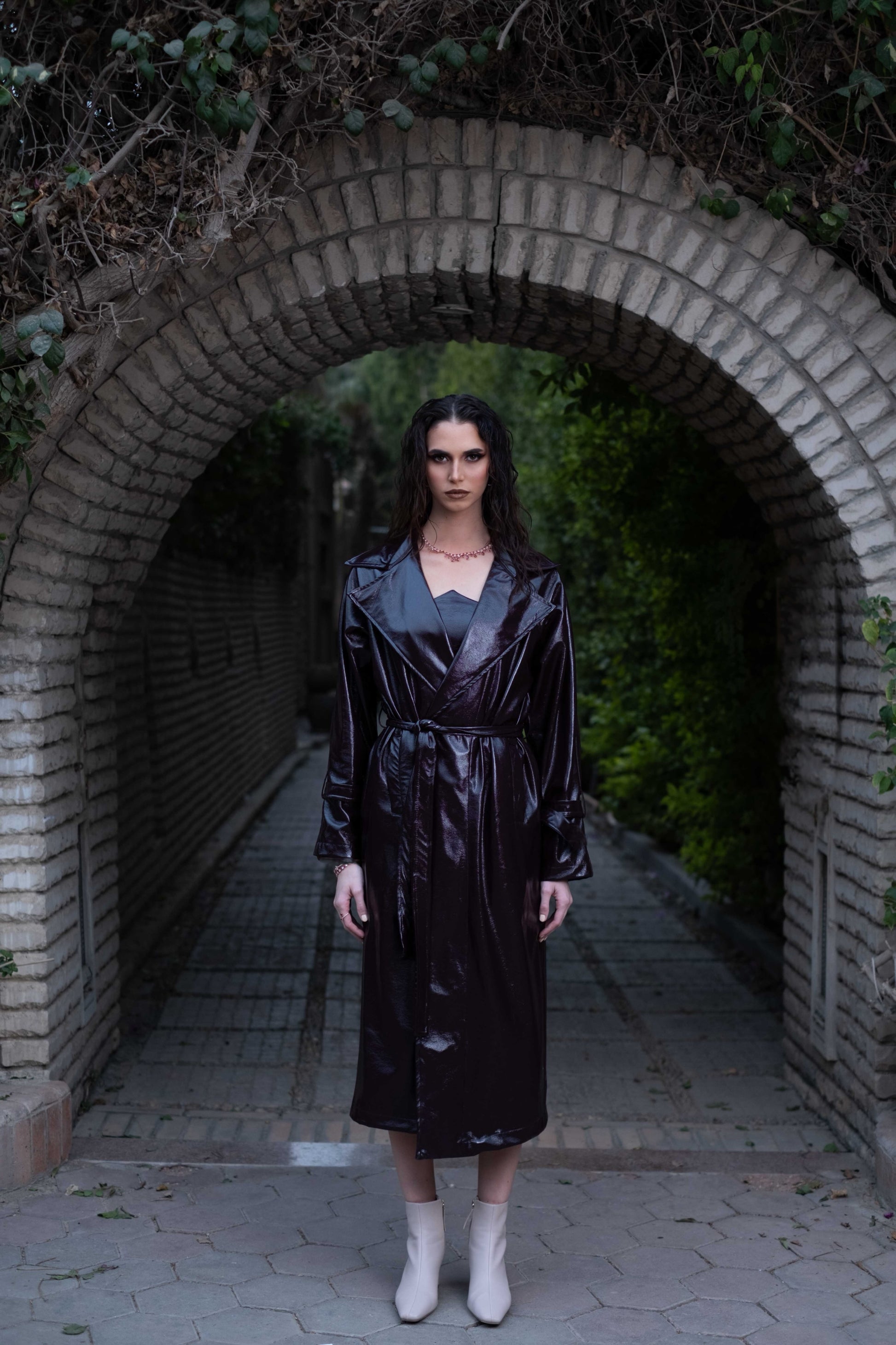 Maroon trench coat