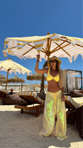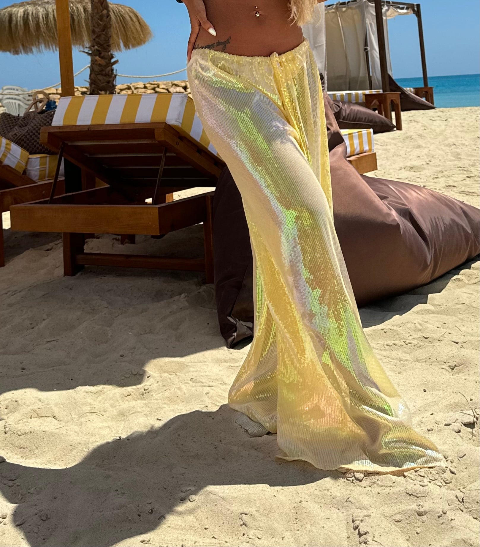 See through beaded yellow pants